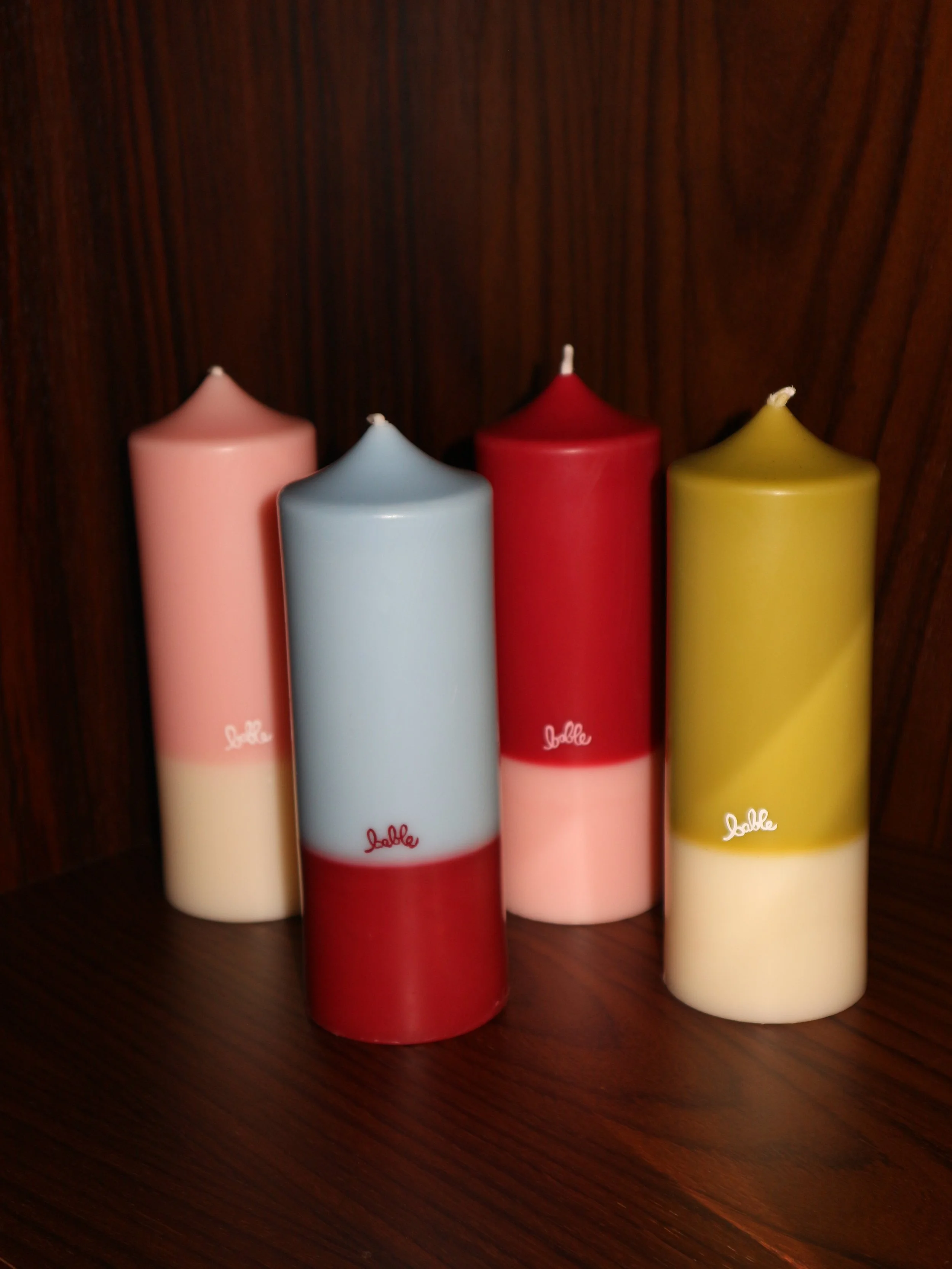 A beautifully balanced duo that feels destined to be together. The deep, romantic cherry red meets a soft, graceful pink. Handcrafted from pure beeswax with a dash of soy, this candle is both striking and soothing, designed to bring a touch of romance and sophistication to any space.